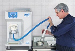 La production de bâtonnets glacés nécessite plusieurs appareils. D'abord, il faut une machine à crème glacée. Pour garantir un goût et une onctuosité optimaux, il est recommandé de turbiner la glace dans une machine à crème glacée et de ne pas verser le mélange glacé dans les moules directement. La recette de la crème glacée est la même que celle pour la glace en boules. Mais il est important de ne pas turbiner trop longtemps afin que la glace ne devienne pas trop dure. Il faut toujours être capable de remplir les moules facilement.