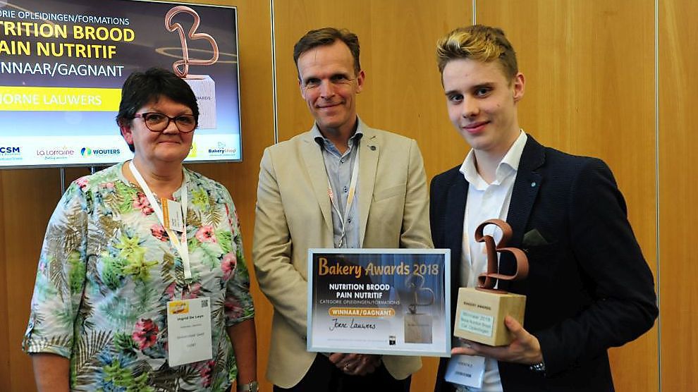 Beste Nutritionbrood Student Jorne Lauwers kreeg de Bakery Award voor het beste Nutritionbrood bij de studenten. Een jonge kerel met een grote passie voor brood die niet bang is om aan tal van wedstrijden mee te doen. Hij vindt dat je met brood kan je even fijn kan werken en heel veel smaken kan combineren zoals bij patisserie.